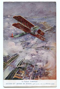 Le 8 février 1919, le Farman Goliath FF.60 n°1 piloté par Bossoutrot et maintenu pour l'occasion en statut militaire - expression de la concurrence britannique prétextant que la guerre n'est pas officiellement terminée - ouvre la voie au transport commercial en assurant avec 14 passagers "militaires" la première liaison Paris- Londres.